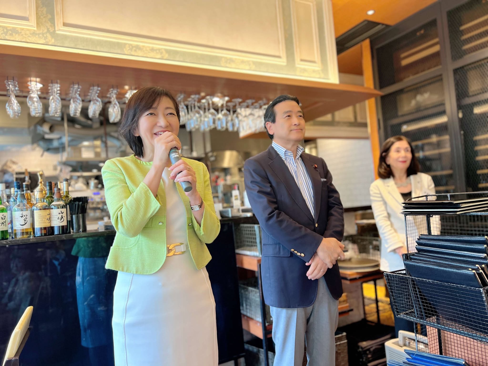 代表の谷幸子さんのご挨拶からスタートし、私が国政報告を行った後、来月の参院選で改選を迎える牧山ひろえさんも参加しました。