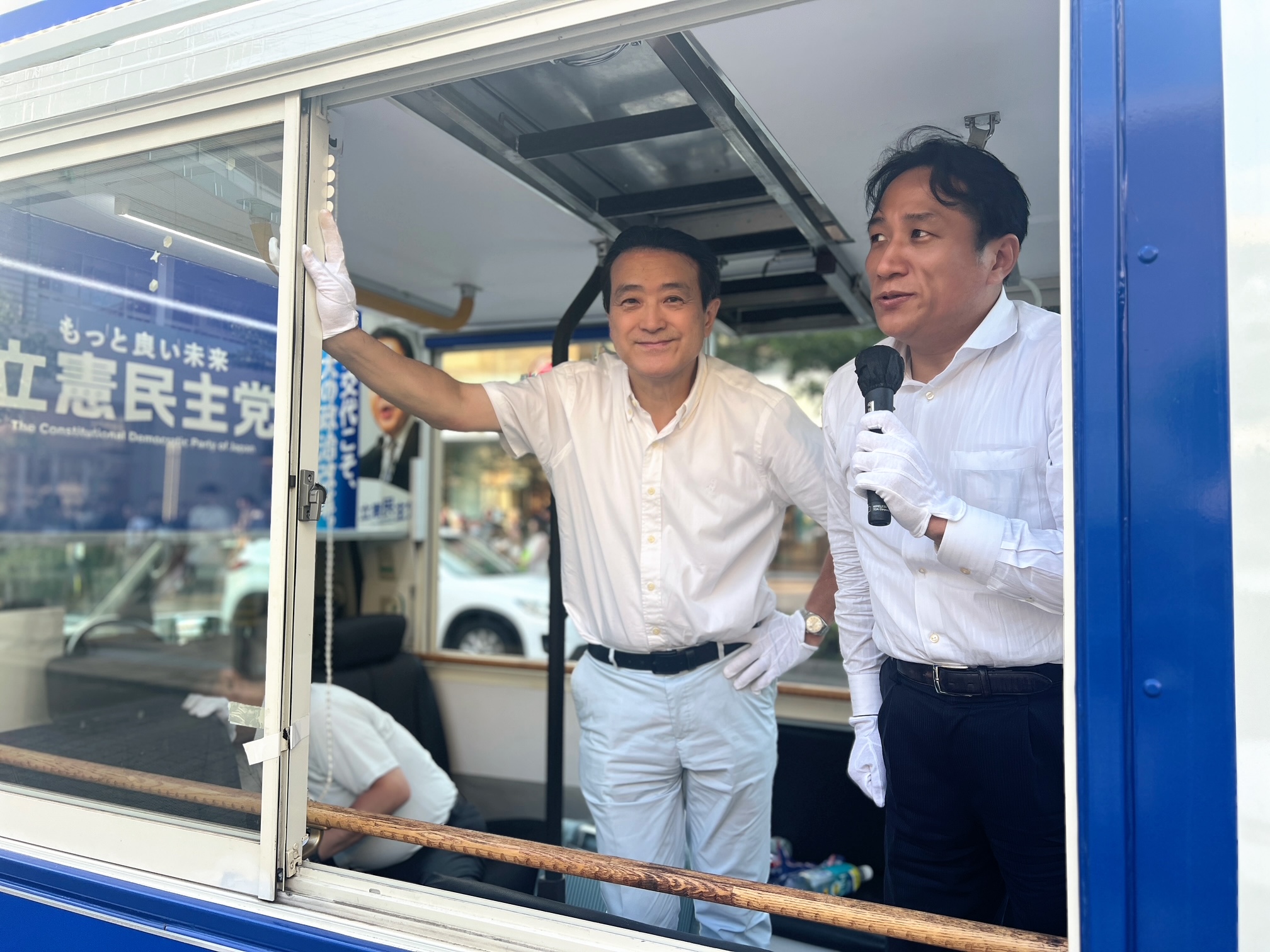 昨日土曜日は炎天下の中、牧山ひろえ、川田龍平両参院議員と地元青葉区と緑区を街宣車で回りました。