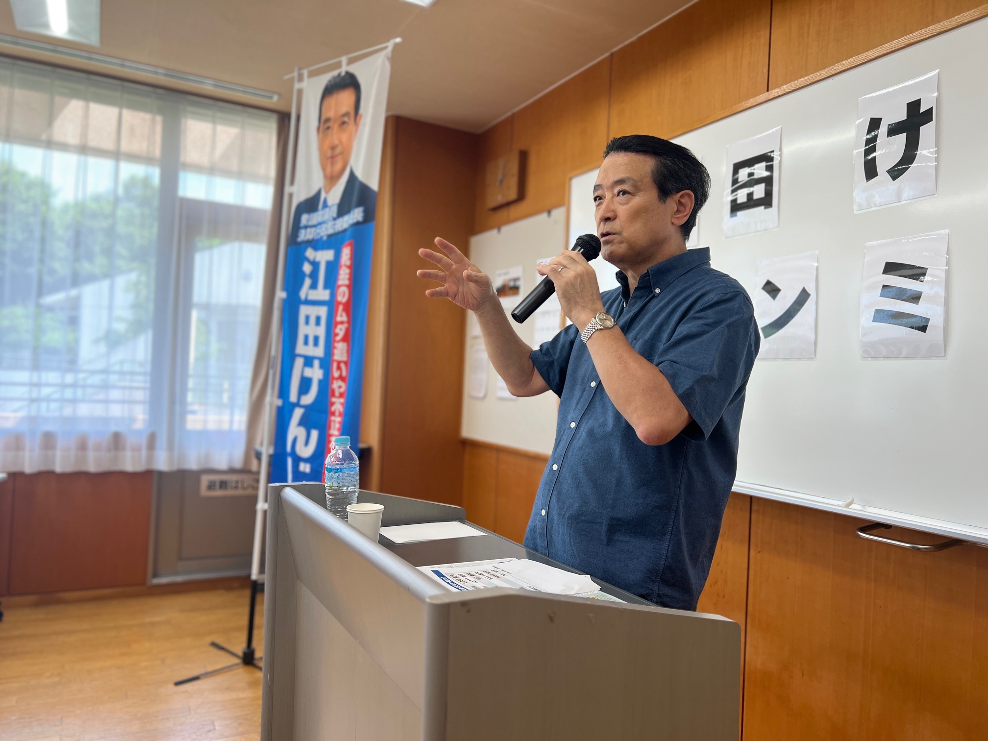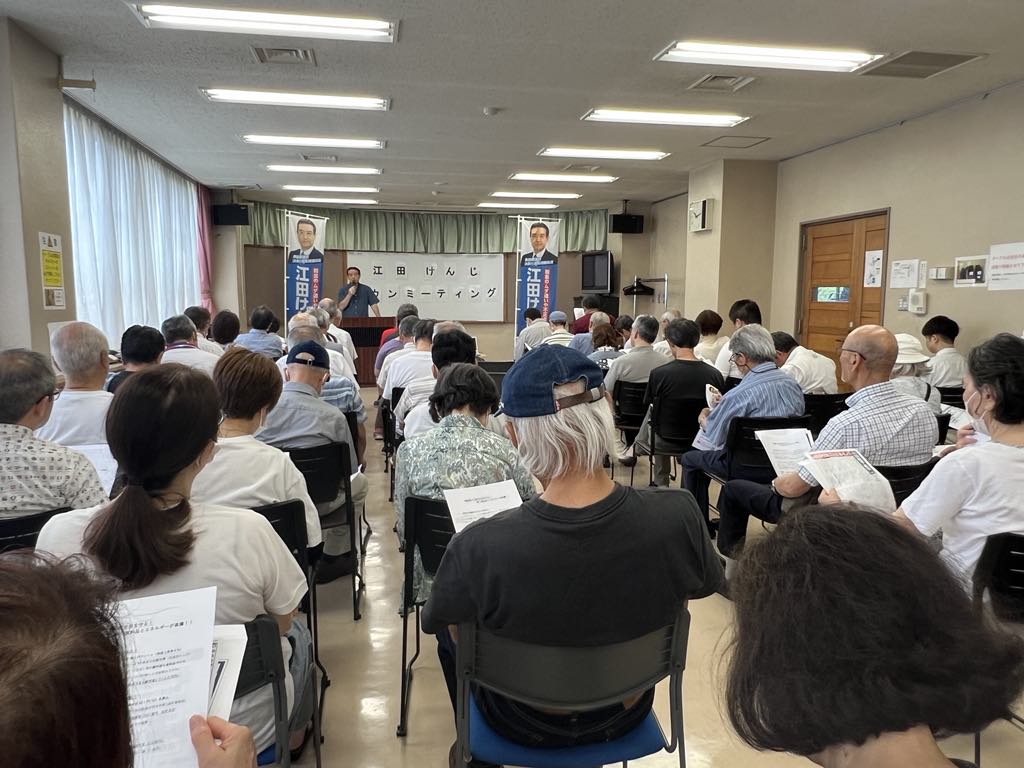 今回は、大場みすずが丘、十日市場の二ヶ所でタウンミーティングを行いました。酷暑の中、大勢の方々のご参加を得ました。